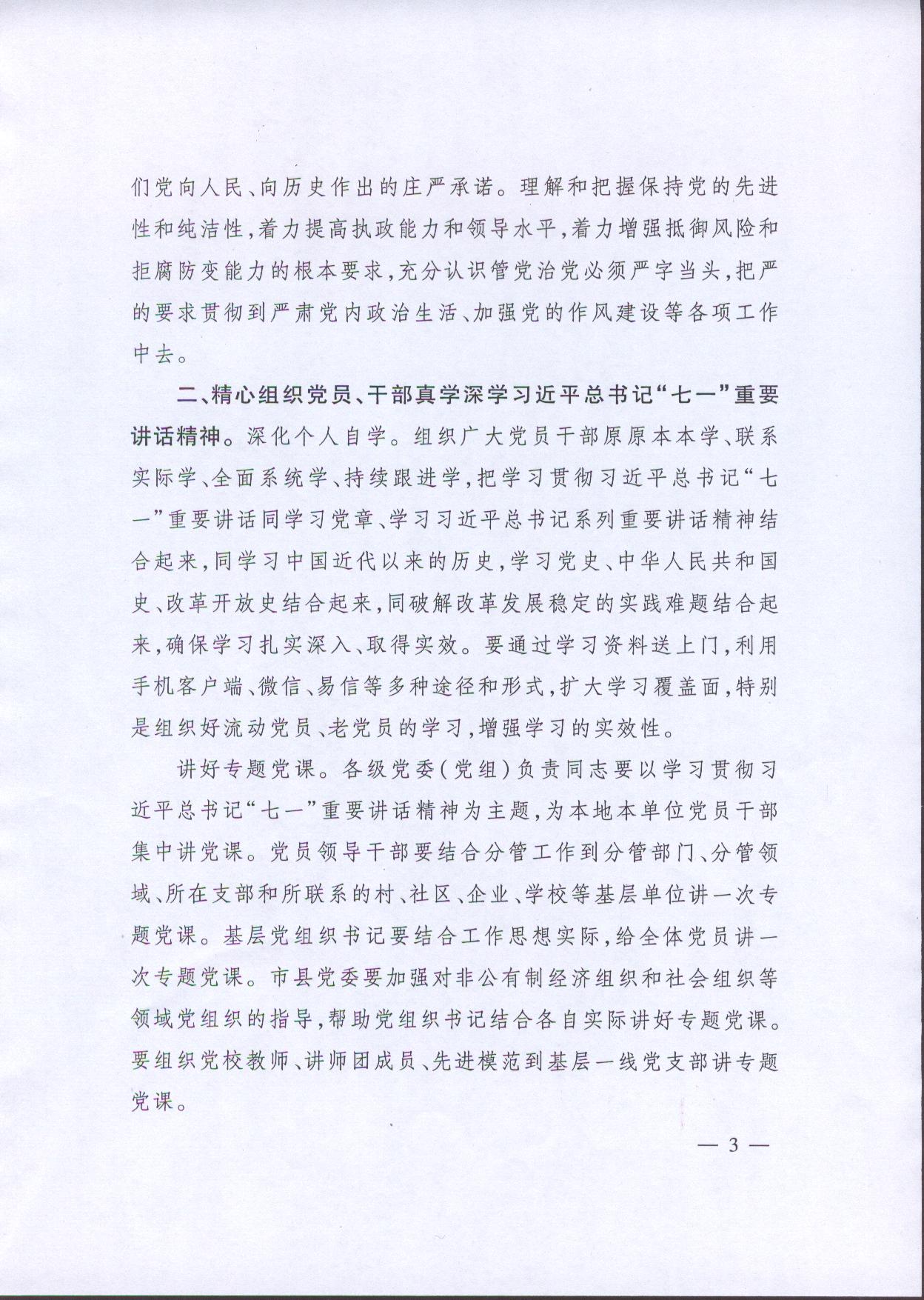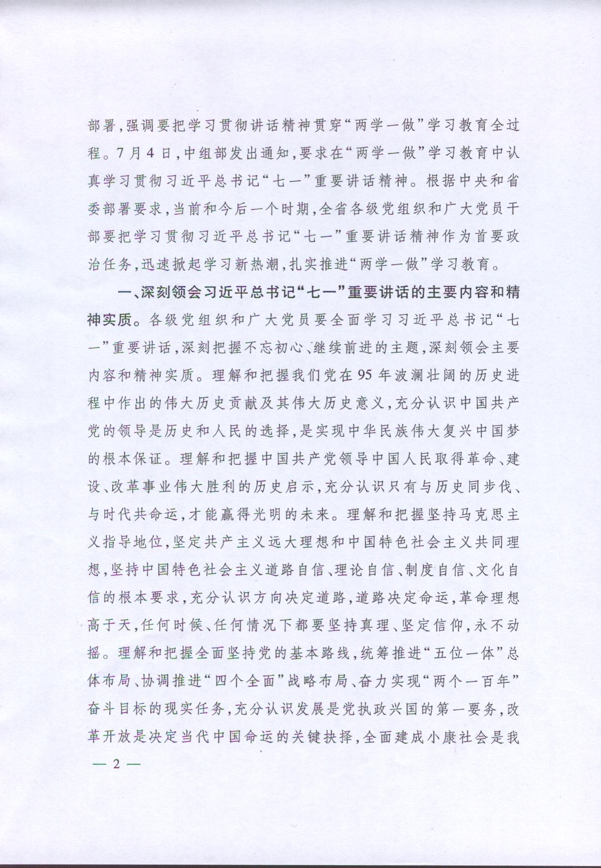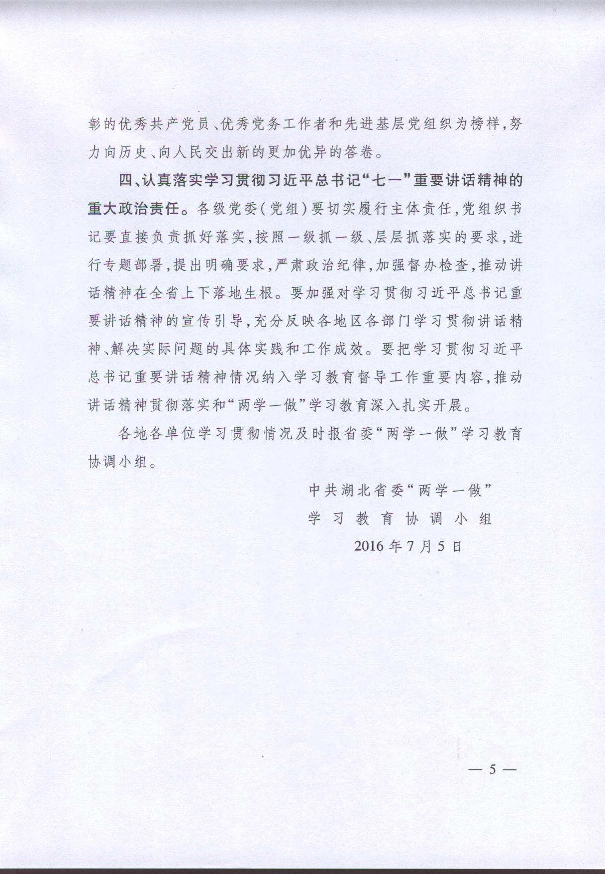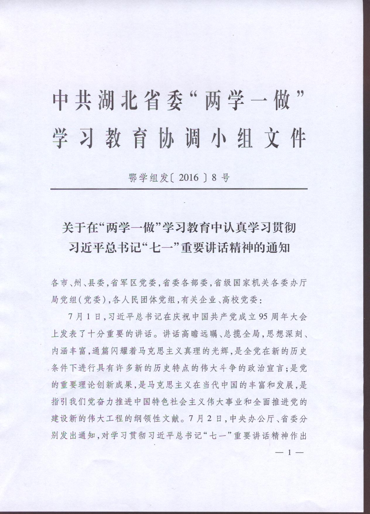 關于在“兩學一做”學習教育中認真貫徹習近平總書記“七一”重要講話精神的通知